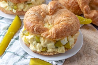 Hay varias formas de servir esta receta como croissants como yo, sándwiches, tostadas, pita, crackers, etc. Hay diferentes formas en que las personas comen ensalada de huevo según su ubicación, nos encantan los croissants principalmente porque los croissants son adictivos.
