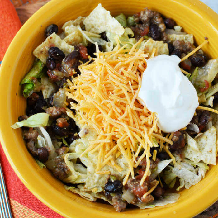 Receta de ensalada de taco de olla de barro es perfecto para una semana ocupada. Puede disfrutar de esta comida con muy poco esfuerzo, casi sin limpieza, y a todos les encantará esta sabrosa receta.