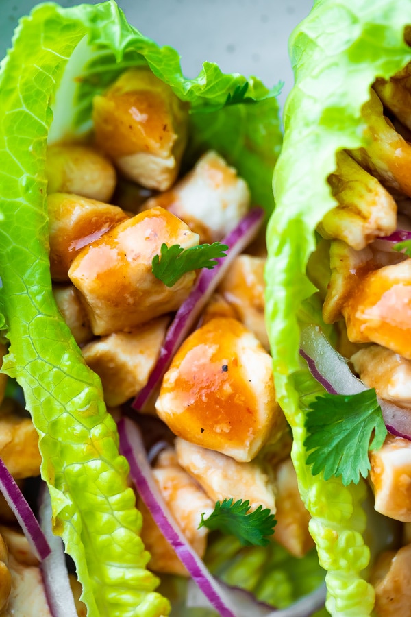¡5 ingredientes simples y 15 minutos es todo lo que se necesita para hacer estas envolturas de lechuga con pollo a la parrilla! Ligero, lleno de sabor y un auténtico placer para todos.