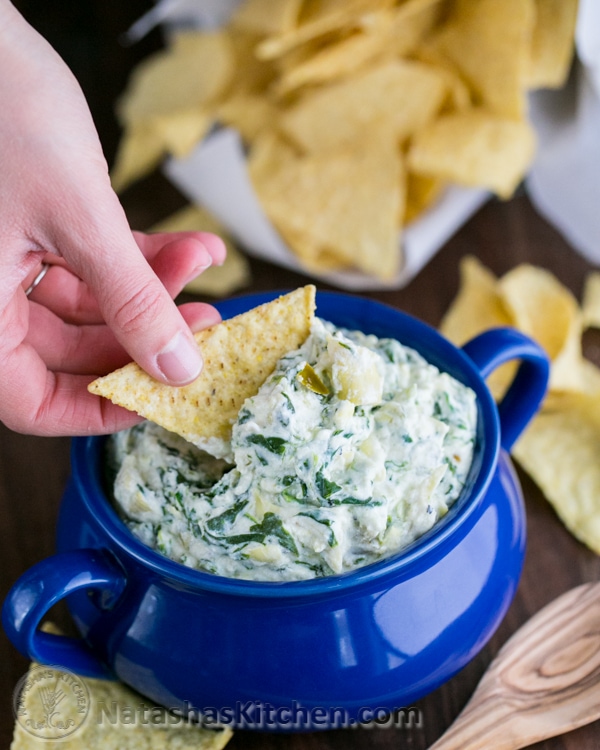 ¿Adivina qué receta es la más popular en la cocina de Natasha? ¡Nuestra salsa de espinacas y alcachofas! ¡Ha sido bloqueado más de 1,000,000 de veces! (PD: ¡Gracias por el compromiso! ¿Cómo puedo encontrarlos y abrazarlos a cada uno de ustedes?). Bueno, aquí hay otra versión que fue golpeada con el palo magro pero no perdió sabor.