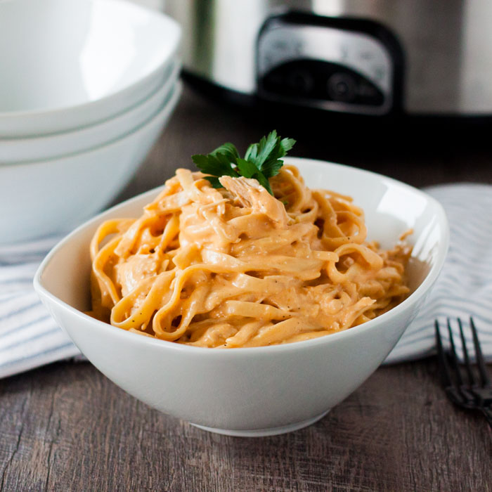 Necesitarás una olla de cocción lenta para estos fideos con pollo al búfalo.