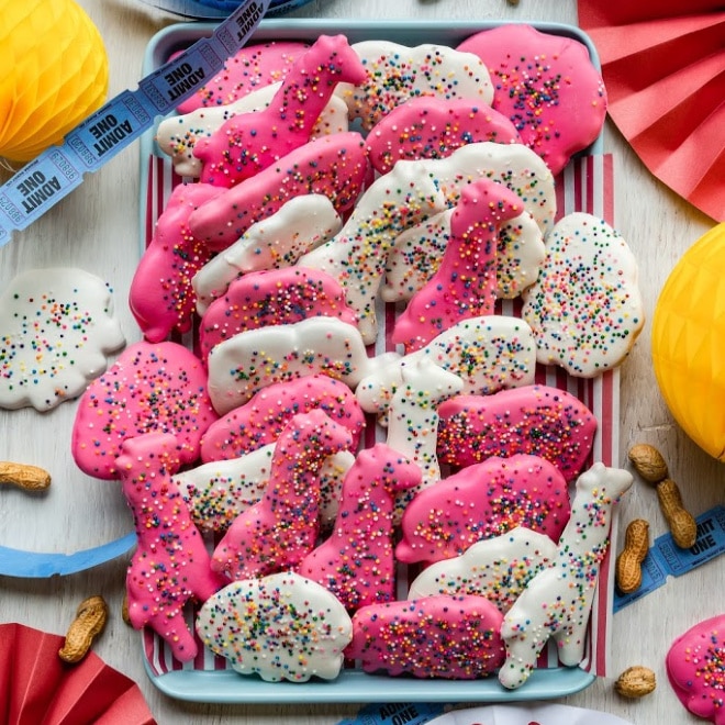 Encontré mini cortadores de galletas en línea en Amazon y Michael’s. Los fuegos artificiales de circo tradicionales tienen formas y animales ligeramente diferentes, ¡pero me acerqué lo suficiente!