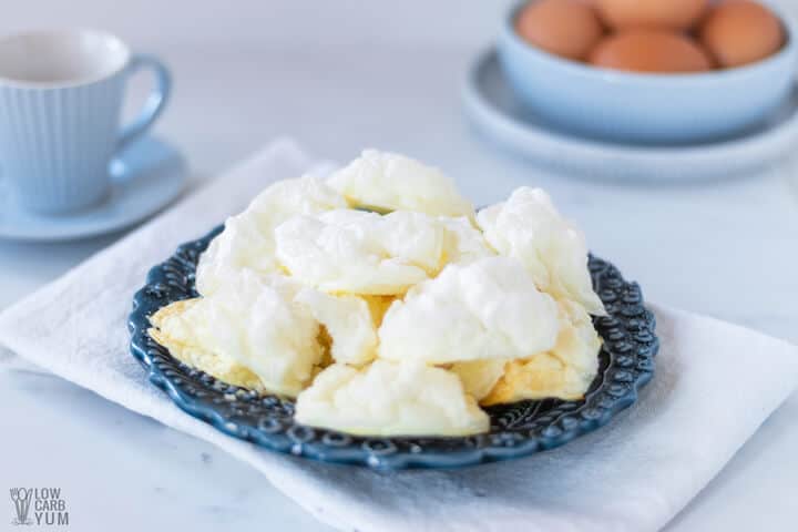 Estas galletas de merengue bajas en carbohidratos pueden ser parte de un huevo rápido, en el que hablaré en breve cuando las combine con una yema y grasa. Además, son un excelente refrigerio para satisfacer sus papilas gustativas.