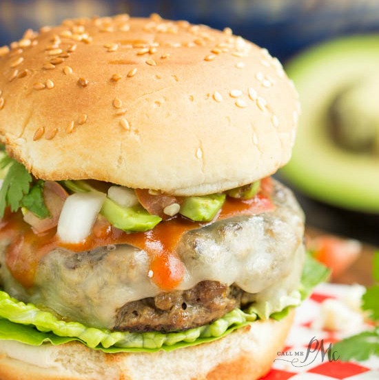 Pico de Gallo fresco (receta casera a continuación), lechuga y rodajas de aguacate completan los ingredientes de esta creativa hamburguesa. ¡Es fresco y abundante y la hamburguesa a la parrilla perfecta para el verano!