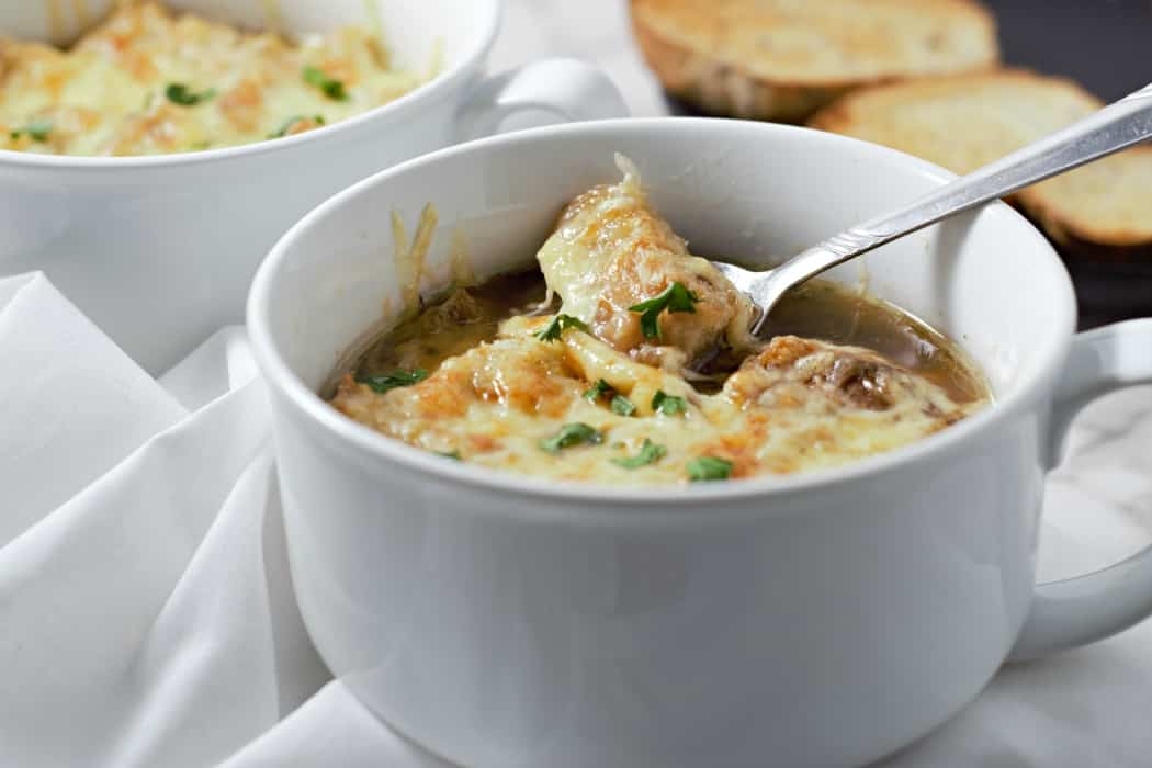 Sí, puedes caramelizar cebollas en una olla de cocción lenta. Y sí, hacen que la sopa de cebolla francesa Crockpot sea más celestial.