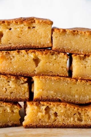 Hawaiian Butter Mochi es un postre dulce, masticable y elástico que es imposible de resistir. Reemplacé la mantequilla con aceite de oliva y parte del azúcar con miel para agregar un toque floral a esta clásica receta hawaiana.