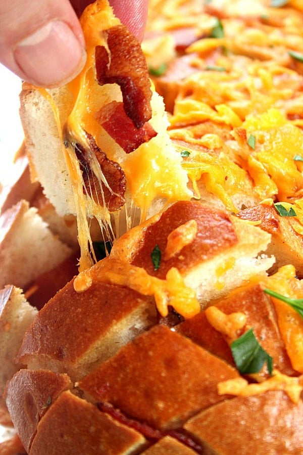 Receta de pan Ranch Ranch con tocino Cheddar – ¡Copa crujiente con queso pegajoso, tocino crujiente y rancho mantecoso en cada bocado! ¡Este pan separado es el plato principal para llevar!