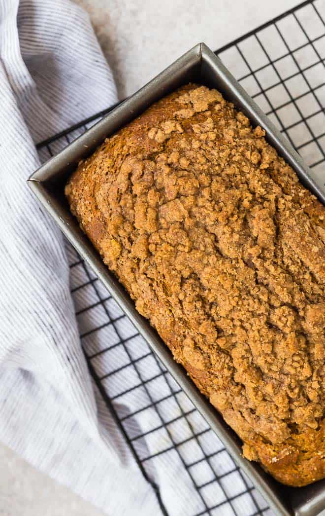 Lo mismo ocurre con este pan de calabaza. Está muy bien sin el streusel, pero con el streusel es delicioso al siguiente nivel.