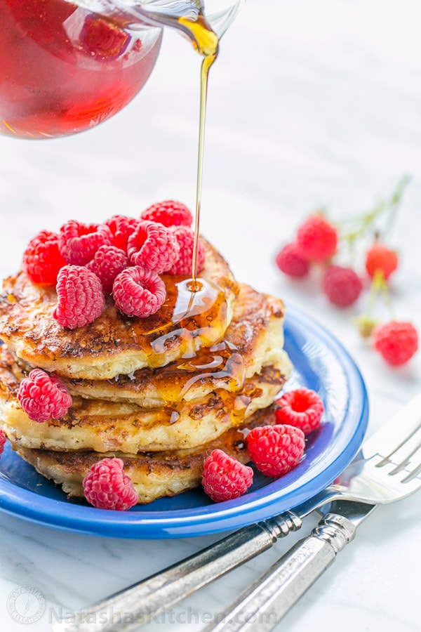 Estos panqueques de ricotta son esponjosos, deliciosos, fáciles de hacer y tienen ingredientes muy simples. También se calientan muy bien en la tostadora si te sobran.