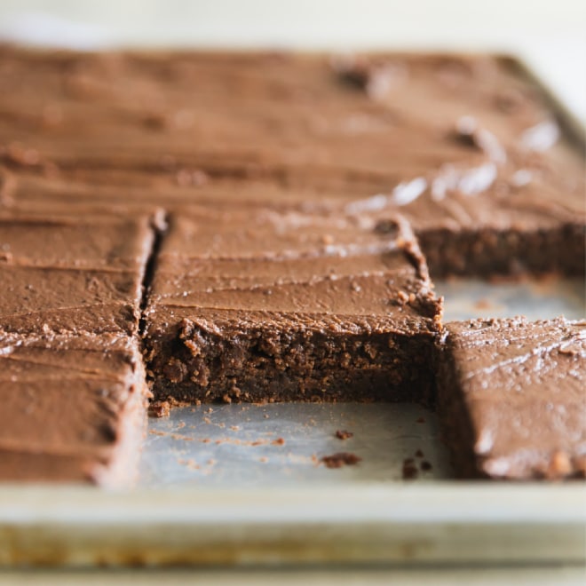 - Pastel de hoja de Texas con suero de leche: Hago mi Texas Sheet Cake con crema agria, pero si también quieres usar suero de leche, ¡está bien! Sin embargo, debes agregar un poco más de mantequilla. Por cada 1/2 taza de crema espesa, sustituya 1/2 taza de suero de leche y 1 cucharada de mantequilla.