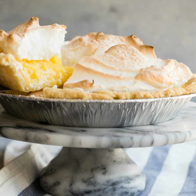 Asegúrate de hacer el merengue antes de hacer el relleno de la tarta para que esté listo para untar mientras el relleno aún está caliente. El calor del relleno sellará el merengue a la superficie y hará que sea mucho menos probable que gotee o se encoja.