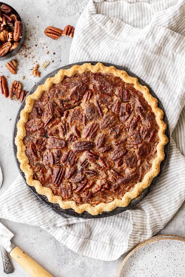 Este pastel de nuez del sur es el mejor pastel clásico que puedes hacer en poco tiempo. Con sabor a nuez, dulce y muy mantecoso, este pastel fue hecho para estar en la mesa de tu fiesta, especialmente cuando se sirve a la moda con helado de vainilla. ¡Agregue el relleno a mi corteza perfecta y prepárese para el pastel perfecto! Si te encanta este pastel, definitivamente prueba estas recetas de pastel de suero de leche, pastel de ajedrez y pastel de camote.