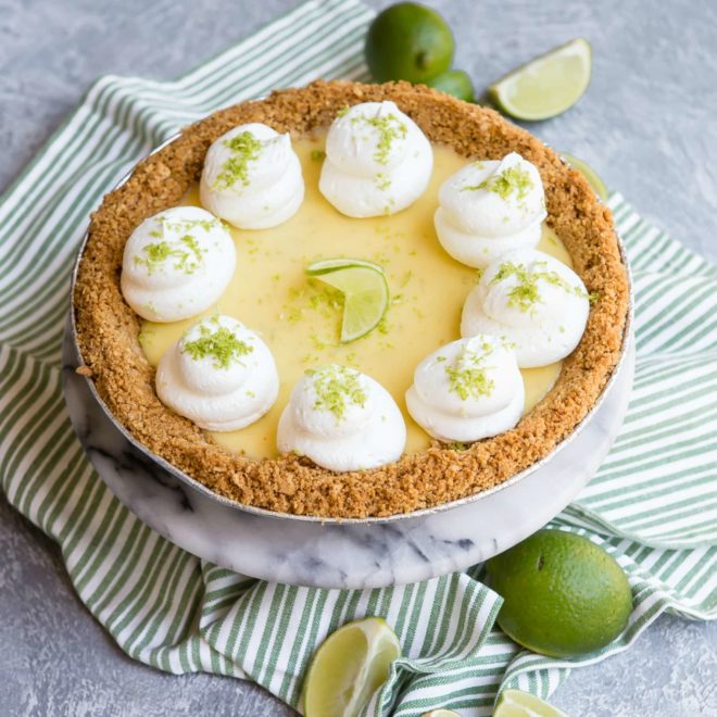 El pastel oficial de Florida es el pastel de limón agridulce, amado por todos los que lo prueban. De ensueño, suave y fresco, es un pastel en el que cualquier residente de Key West estaría feliz de sumergir su tenedor. Esta receta es tan clásica como parece: una corteza de galleta graham, un relleno de yema de huevo y un relleno de crema batida.