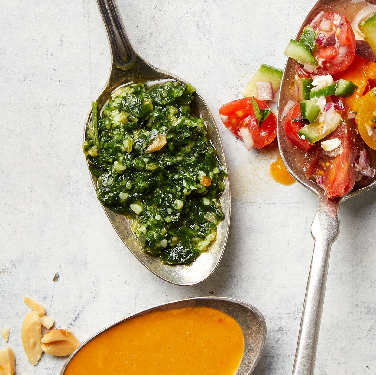 Combine el cilantro, el perejil, el manchego, las semillas, el jugo de limón, el ajo y la sal en un procesador de alimentos. Pulse hasta que esté finamente picado. Con el motor en marcha, agregue lentamente el aceite en un chorro constante; procese hasta que quede suave, unos 20 segundos. Raspe los lados según sea necesario y procese una vez más hasta que quede suave.