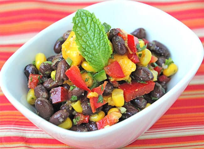 Esta salsa de mango y frijoles negros no solo es saludable, es colorida, sabrosa y perfecta como refrigerio o guarnición. El jugo de cítricos frescos realza los sabores y el mango fresco agrega dulzura. Duplica la receta si quieres servir como guarnición.