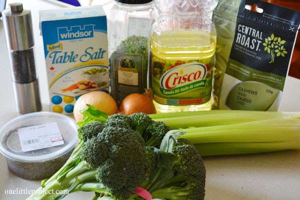 Además de ser sin gluten, sin lácteos y sin azúcar, no lleva caldo de pollo, solo sal, y utiliza anacardos como parte del caldo. Aquí está la receta de crema de brócoli de The Healthy Happy Wife: