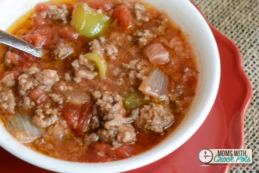 ¡Una cena de cocción lenta rápida y fácil! ¡Haga un lote de esta receta de sopa de pimientos rellenos Crockpot!