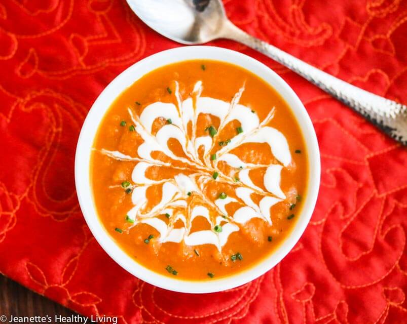 Prepare esta sopa con unos días de anticipación y caliéntela en su olla de cocción lenta para el Día de Acción de Gracias. Puedes decorar la parte superior de esta sopa con una cuchara o un remolino de crema agria o crema fresca,