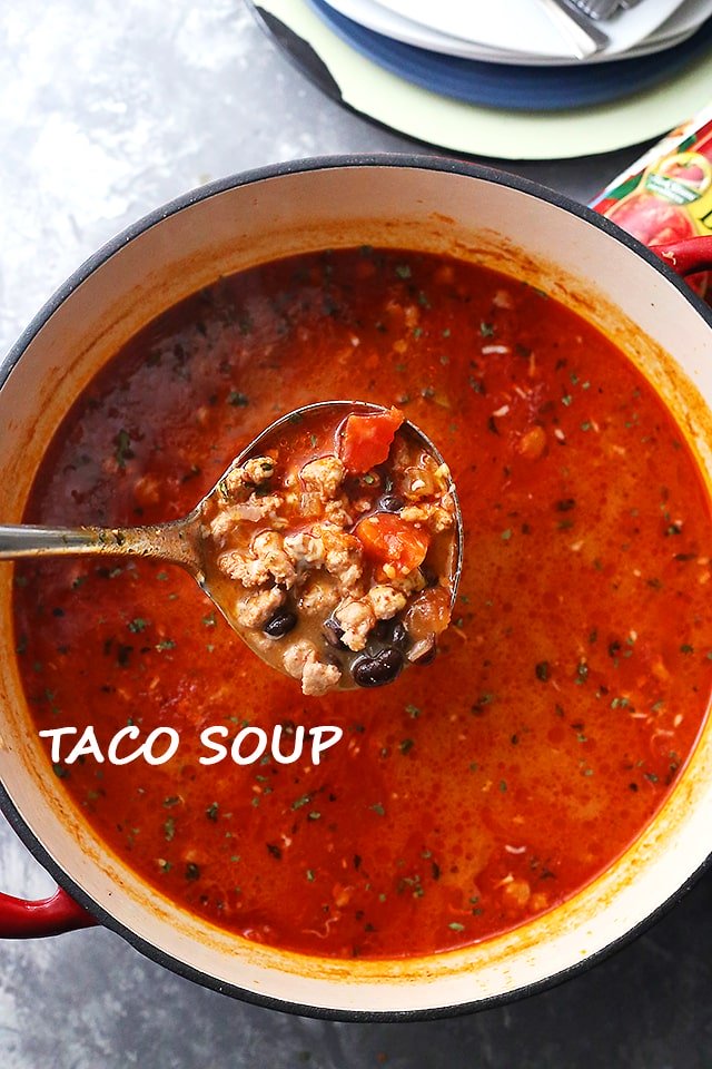 Receta de sopa de taco – ¡Todo lo que se necesita son unos 30 minutos para esta deliciosa y reconfortante sopa de taco en una olla llena de carne de taco, tomates y frijoles! ¡Tan fácil y genial para los días de semana!