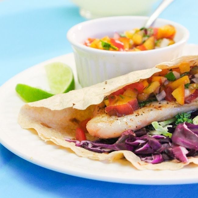Estos tacos de tilapia a la parrilla con salsa de nectarina son un toque dulce a los tacos tradicionales y una cena deliciosa y saludable. Siéntase libre de intercambiar otras frutas de hueso maduras como melocotones o albaricoques.