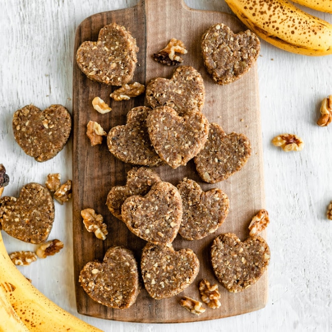 - ¿Estás listo para tomar bocados de energía! Si la masa es demasiado pegajosa o difícil de trabajar, puede refrigerarla hasta que se enfríe. Luego usa una cuchara o tus manos para formar los bocados (¡o empuja los cortadores de galletas para replicar esta increíble forma de corazón!)