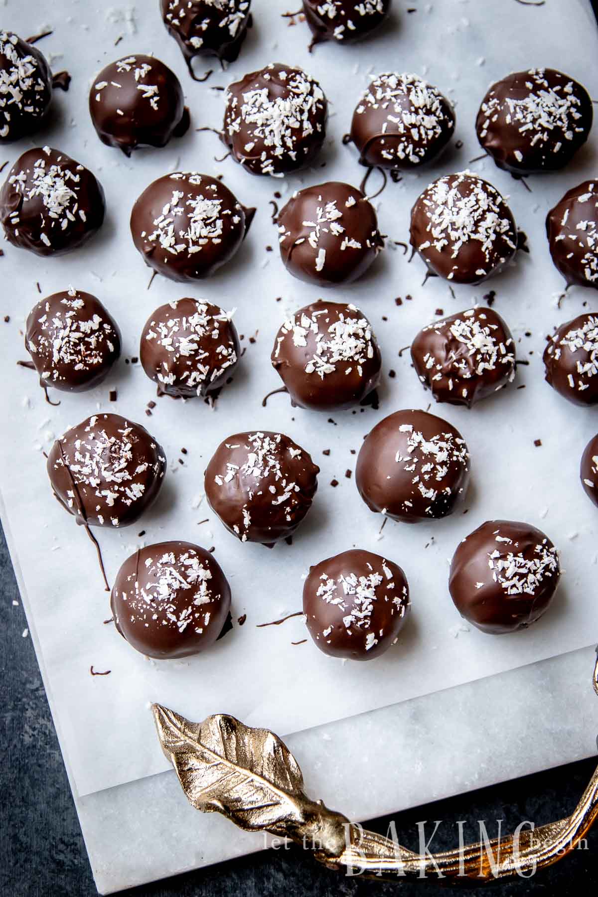 – Los dulces de chocolate y coco se pueden congelar una vez hechos. Haz rodar cada bola individualmente frustrar, luego colóquelos en una bolsa para congelar. Exprima todo el aire antes de sellar. Los bombones duran aproximadamente tres meses almacenados de esta forma.