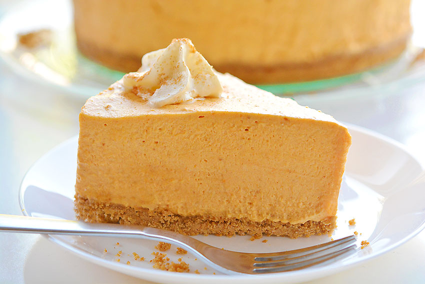 Este cheesecake de calabaza sin horno está buenísimo. ¡Y es muy fácil de hacer! Ensámblelo por la noche, póngalo en el refrigerador durante la noche y estará listo para usar cuando lo necesite. ¡No hay necesidad de cocinarlo! Realmente solo necesita 3 o 4 horas en la nevera, por lo que incluso puedes hacer esta receta el día que la necesites. ¡Ponlo en la nevera y olvídate!