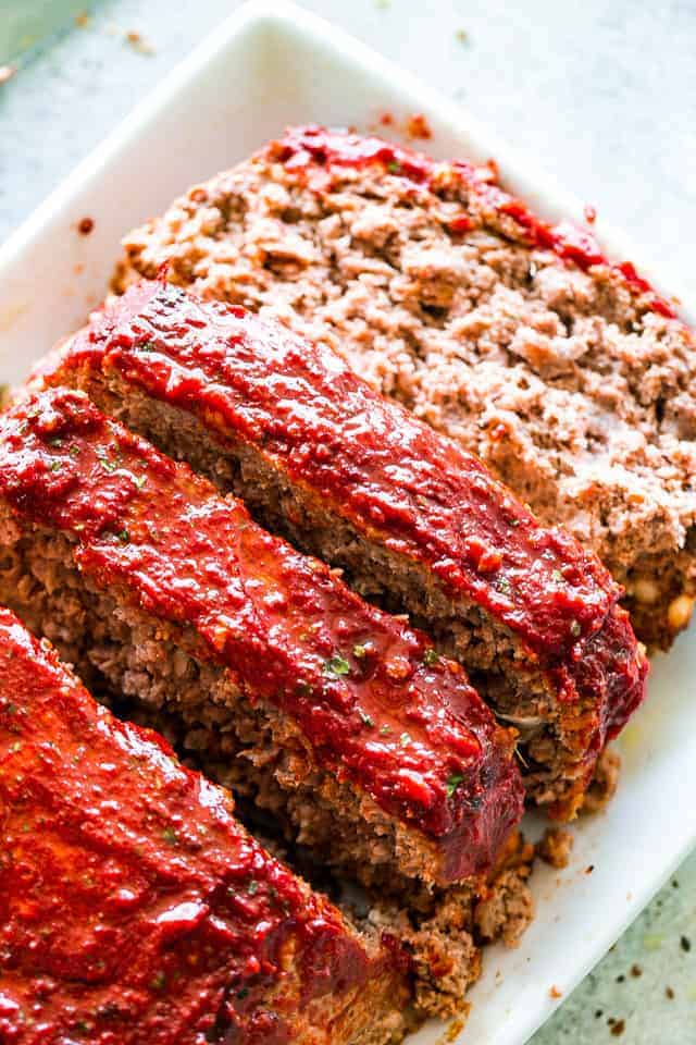 ¿Lo primero que aprendí sobre mí mismo sobre el pastel de carne? Esmalte KETCHUP. No sé, amigos… sin él, no tocaré este trozo de carne. El glaseado de salsa de tomate crea un glaseado cremoso y picante que combina perfectamente con el pastel de carne.