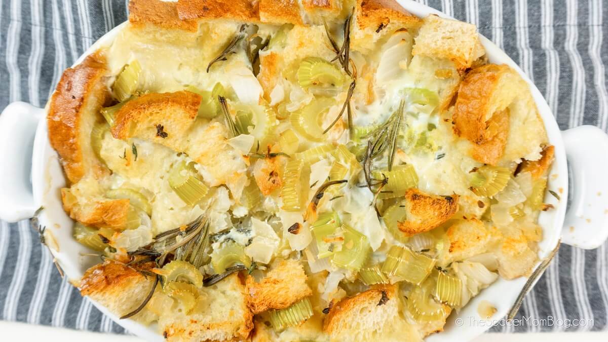 Suave y húmedo por dentro, dorado y ligeramente crujiente por encima y perfectamente sazonado con hierbas frescas, ¡este es el acompañamiento perfecto para cualquier cena de Acción de Gracias!