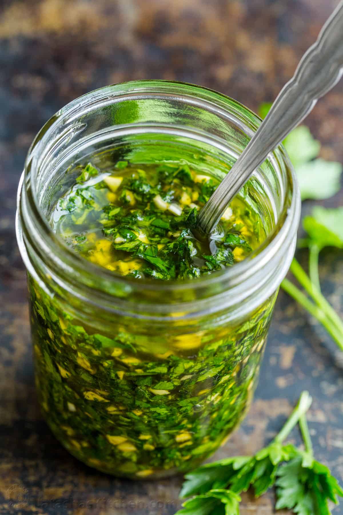 Esta receta de chimichurri es excelente como aderezo para bistec a la parrilla, pollo, verduras y casi cualquier cosa.