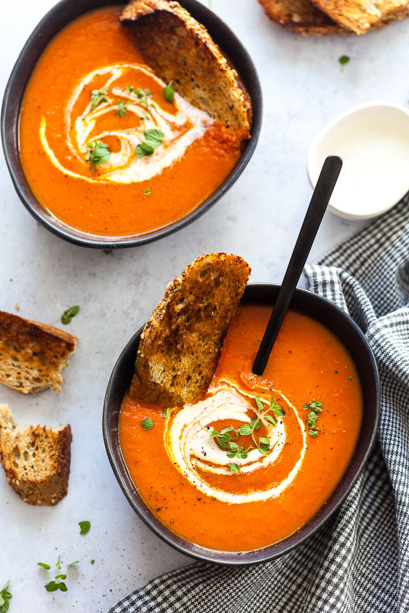 Estamos en pleno invierno y con el frío apetece sopas calientes y abundantes. ¿Es raro hacer sopa de tomate en pleno invierno? Espero que no, ya que nos encanta la sopa de tomate y es muy fácil de hacer en cualquier época del año, incluso cuando los tomates están fuera de temporada. Y por cierto, ¡aquí también tenemos una gran receta de sopa de tomate con tomate fresco de temporada!
