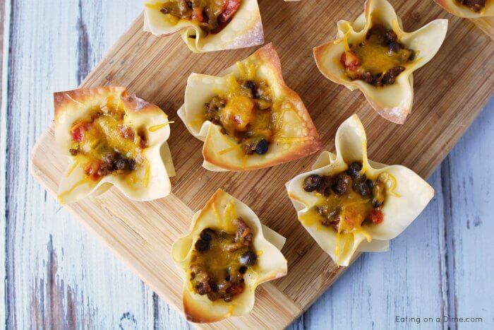 Cada pequeño wonton está lleno de sabor. Amarás Receta fácil para tacos wonton. Mi parte favorita, puede hacer que un lote grande sea más fácil, lo que significa que también estás cocinando en el congelador. ¡Esta receta tiene mucho queso y deliciosos tacos de carne, verduras y más! ¡Tan bueno!