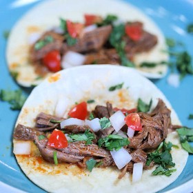 Esta carne también es deliciosa en tortillas de maíz. Usa lo que prefieras.