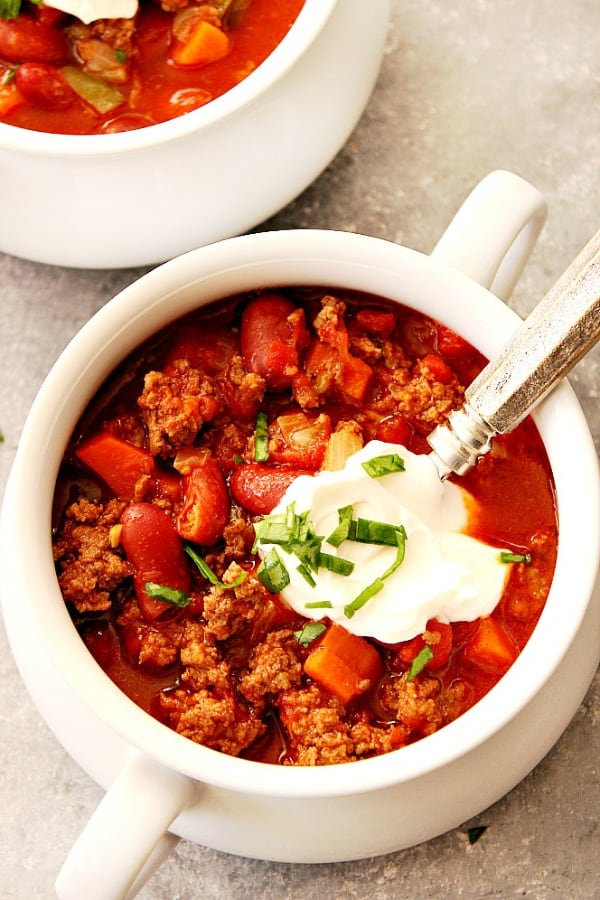 Receta instantánea de chile de res – ¡Rico y sabroso chili de res y frijol hecho en la olla a presión! Sabe a cocinar todo el día, ¡pero solo toma 20 minutos prepararlo!