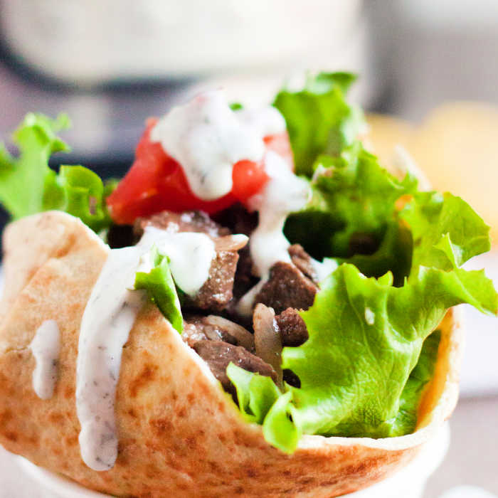 Los niños se vuelven locos con esta receta de gyro de carne. El asado de res es tan tierno a pesar de que solo tomó unos minutos en la olla instantánea.