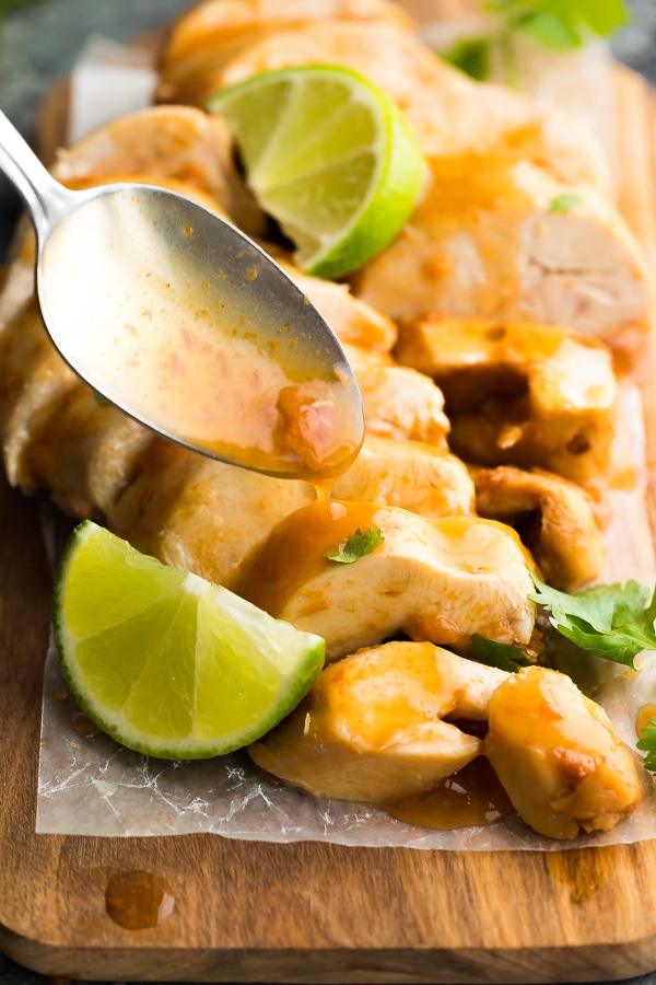 Nos encantan estas pechugas de pollo servidas con tacos, pero también habrían sido geniales como proteína independiente… no solo obtendrás pechugas de pollo perfectamente jugosas, ¡sino también una salsa dulce de limón y chipotle perfecta para servir con arroz o verduras!