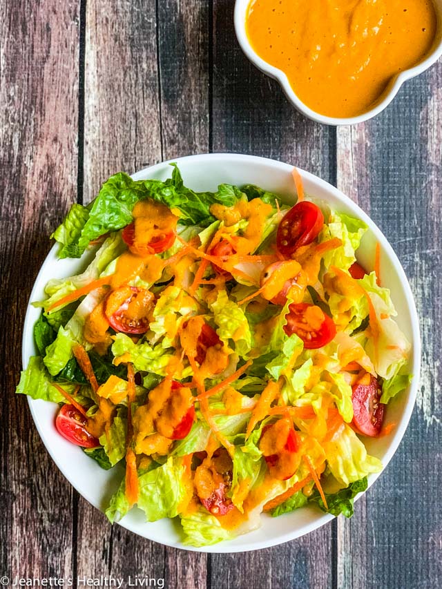 Tengo esta receta para Aderezo japonés para ensalada de jengibre y zanahoria en mi carpeta de recetas durante años. Honestamente, ni siquiera sé si esta receta es realmente japonesa, solo sé que tiene un sabor muy similar al que se sirve en los restaurantes japoneses.