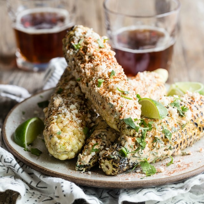 Apuesto a que este maíz callejero mexicano, conocido como maíz, será tu nueva forma favorita de comer maíz en mazorca este verano, incluso si eres un purista en el departamento de maíz. El maíz en la mazorca se asa al fuego hasta que esté ligeramente carbonizado, luego se cubre con una mezcla picante de crema agria, mayonesa, cilantro y chile en polvo, que se derrite en granos calientes y tiene un sabor absolutamente fantástico.