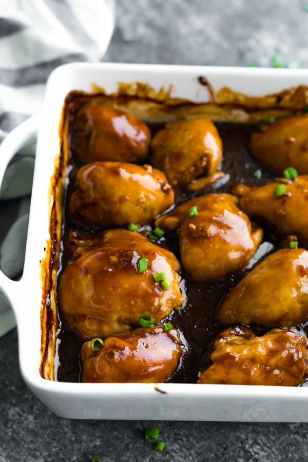 Cuando se trata de esta receta, seamos honestos: ¡se trata de la salsa de miel y ajo! Usé la misma salsa que la versión de olla de cocción lenta de esta receta, pero omití el agua para darle un sabor más fuerte. ¡Se reduce al horno para que sea aún más concentrado y delicioso!