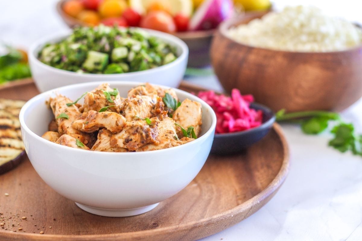 Como actualmente no tengo acceso a una barbacoa, improvisé para crear una versión de shish tawook en la estufa. Si es invierno cuando te encuentras con esta publicación, te prometo que tu pollo estará más caliente de esta manera. ? Y en cuanto a la salsa de yogur, mis amigos sin lácteos estarán felices de saber que hice la receta con yogur a base de coco. (¡Una almendra también funcionaría!)