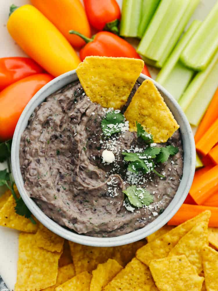 ¡Las salsas son uno de mis bocadillos favoritos porque son súper fáciles y deliciosas! No importa qué sabor anhelas, ¡hay un chapuzón para satisfacer! He publicado algunas recetas de salsa en mi blog a lo largo de los años, pero debo decir que creo que las salsas de frijoles son algunas de mis favoritas de todos los tiempos. Tienen la mejor textura. ¡Denso, rico y lleno de sabor! Parece que a todos les encanta esta salsa de frijoles fritos cada vez que está presente, ¡así que decidí probarla con frijoles negros!