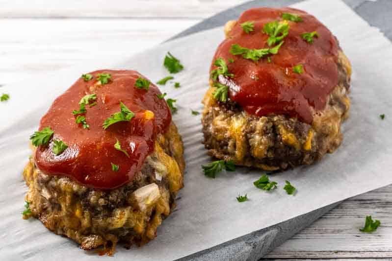 Forme la mezcla de carne en 2 pequeños panes ovalados. Coloque los bollos en una bandeja para hornear o en una bandeja poco profunda forrada con papel pergamino o papel de aluminio engrasado con spray antiadherente. Haga clic aquí para una olla pequeña.
