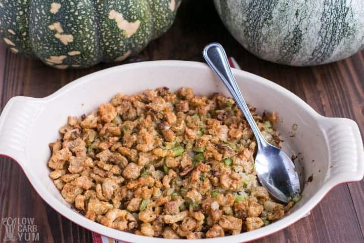 Para mí, uno de esos platos tradicionales importantes es el relleno. No quería ignorarlo en Acción de Gracias. Es por eso que creé este relleno bajo en carbohidratos hace casi una década. ¡Y desde entonces lo he estado haciendo todos los años!