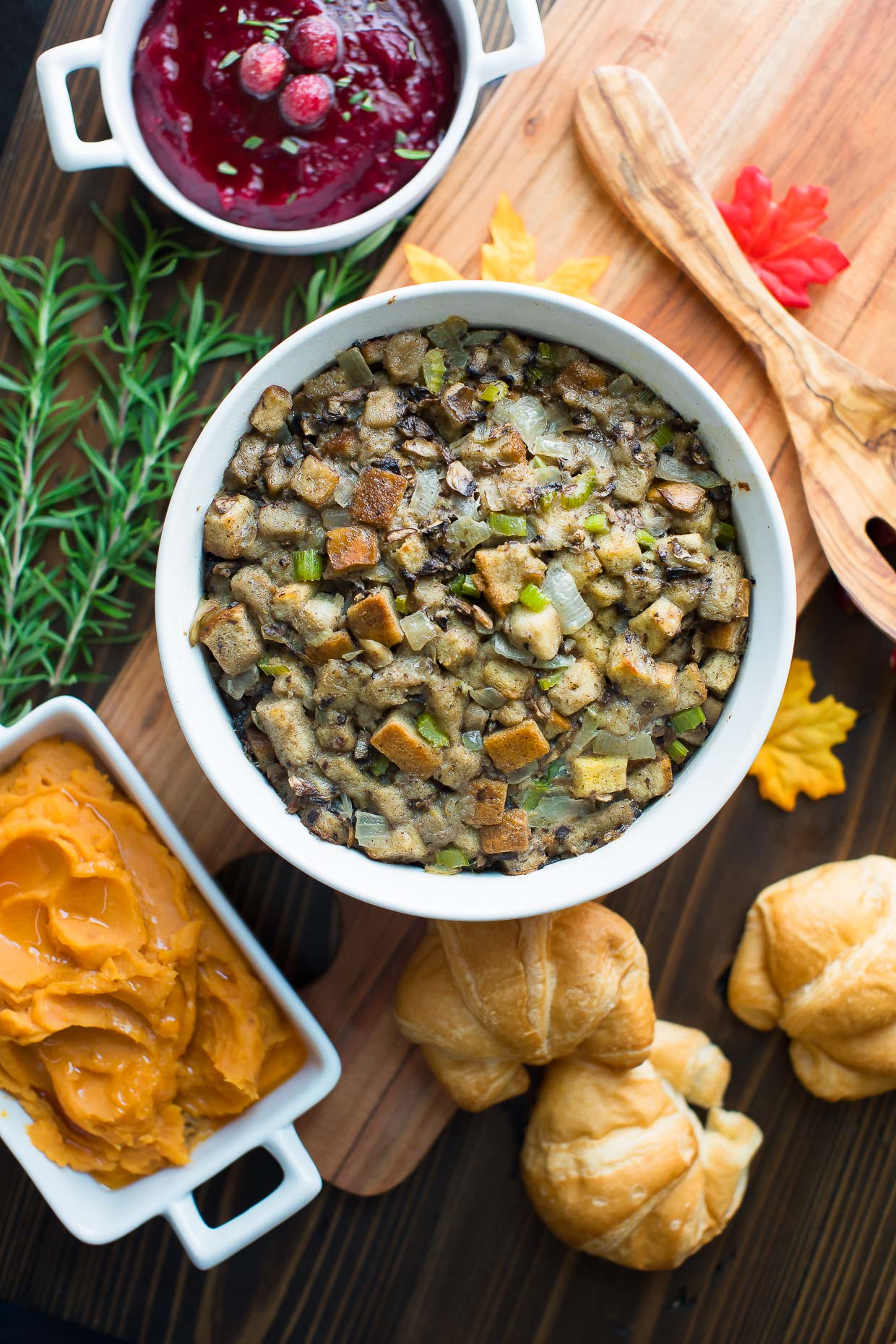¡Combina este sabroso relleno vegetariano con salsa de arándanos, camote batido y mi famosa calabaza al horno!