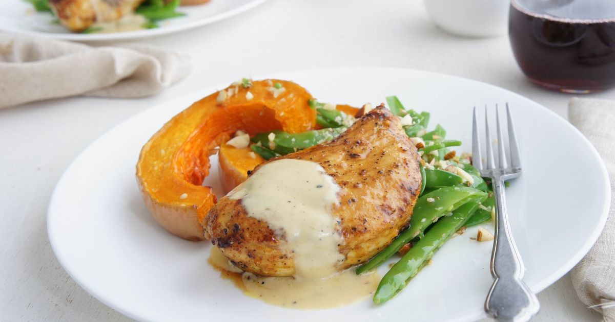 Extienda la salsa sobre cada pechuga de pollo para que cubra ligeramente ambos lados de la pechuga.