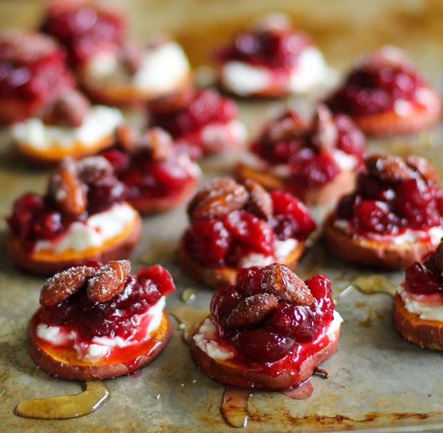 Rodajas De Camote Con Queso De Cabra Y Arándanos Asados