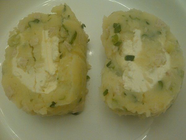 Cocine o cocine al vapor las papas hasta que estén tiernas, hágalas puré (no agregue leche ni mantequilla) y colóquelas en un tazón.