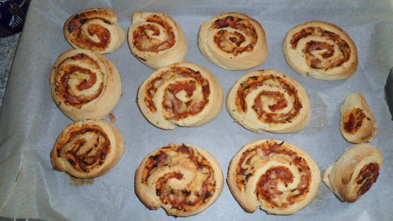 Coloque los rollos en la bandeja preparada. Hornee durante 25-30 minutos o hasta que estén dorados. Retire del horno y deje enfriar.