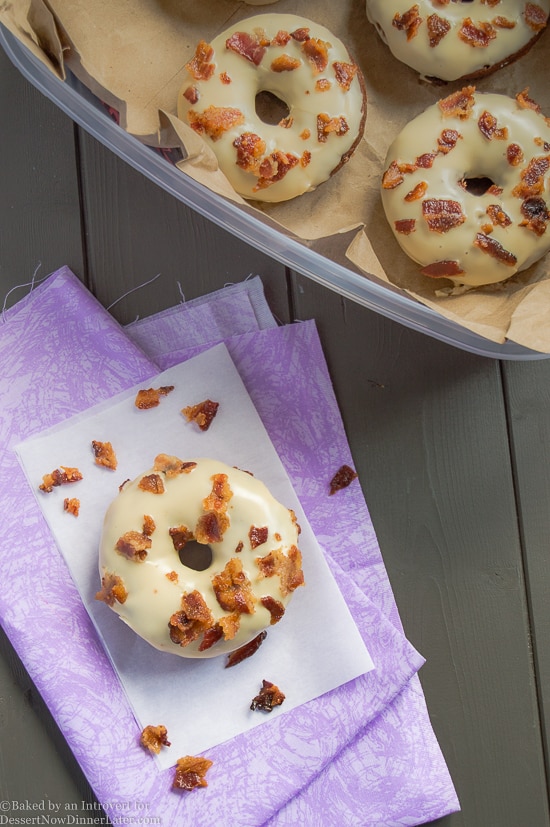 ¡Buen sábado! Soy Jen Here de Baked by an Introvert, con una fantástica receta de donas. El desayuno perfecto para un sábado por la mañana. Me encantan las donas. (Donut / Donuts, como quieras deletrearlo). Siempre podría comerlos. Son tan hinchados, ligeros y dulces con el glaseado. Mi favorito siempre ha sido el que tiene crema como estos donuts de calabaza, pero nunca puedo rechazar un donut de chocolate suave. Especialmente cuando está cubierto con glaseado de arce y cubierto con tocino crujiente, se desmorona.