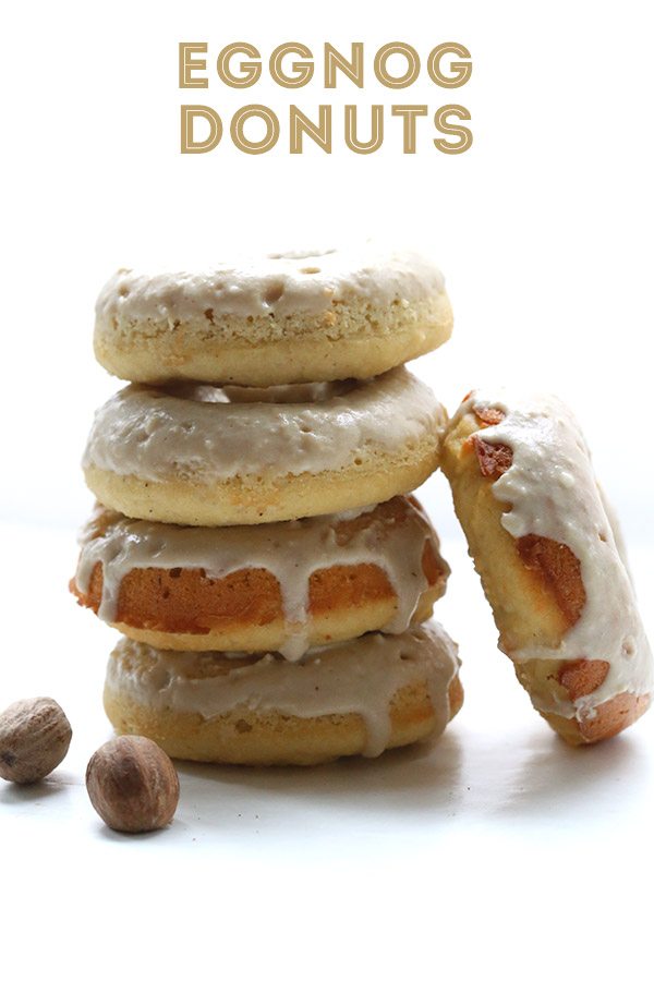 Rosquillas dulces bajas en carbohidratos con los sabores festivos del ponche de huevo y la nuez moscada. ¡Un delicioso regalo de vacaciones! ¡E ingresa para ganar un ENORME endulzante Low Carb Swerve!